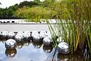 В 2008 году геодезический купол, спроектированный Паулой Засникофф Кардозо из бразильской архитектурной практики «Arquitetos Associados», был возведён в эвкалиптовом лесу и теперь под ним расположена инсталляция Мэтью Барни «De Lama Lâmina» (2004—2008), изображающая автомашину, выкорчевывающую дерево[11]. «Падающие лучи» Криса Бурдена (1984—2008) сделаны из 72 стальных балок, упавших с 45 метров с кранов[7] в яму, заполненную влажным цементом[6]. «Звуковой павильон» Дуга Эйткена был создан в 2009 году и состоит из круглого здания из матового стекла[7] на вершине холма, где также расположен колодец. Он спускается на глубину в 200 метров, и с его дна микрофоны передают звуки Земли, которые затем усиливаются и воспроизводятся в прямом эфире в галерее выше[11]. «Комната растительности» (2012) Кристины Иглесиас представляет собой куб из полированной нержавеющей стали, отражающий окружающий лес. Посетители проскальзывают в расщелины, где стены вылеплены листвой, входя в лабиринт внутри лабиринта; в центр куба периодически устремляются потоки воды[7].
