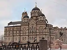 Построен в неовизантийском стиле по проекту епархиального архитектора Николая Никонова. Адрес: Санкт-Петербург, Набережная реки Карповки, 45.