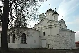 Церковь построена в бывшем епископском селе Городище. Согласно исследованиям Б. Л. Альтшуллера, храм датируется второй половиной XIV века, по более современным исследованиям С. В. Заграевского — в начале XIV века. Церковь построена из грубоотёсанных белокаменных блоков. От этого древнейшего сооружения до нас дошли стены четверика примерно на половину его высоты, а также стены апсид.