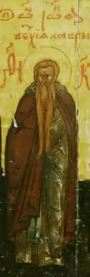![]() Иоанн Ветхопещерник. Минея — апрель (фрагмент). Икона. Русь. Начало XVII века. Церковно-археологический кабинет Московской духовной академии | |