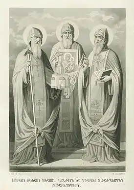 ![]() Михаил Сабинин. Иоанн Иверский, Габриель Иверский и Евфимий Афонский | |