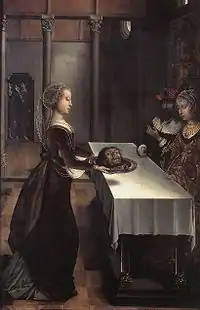 Дочь Иродиады Саломея (не названная в Евангелиях по имени) в день рождения Ирода Антипы «плясала и угодила Ироду и возлежавшим с ним». В награду за танец Ирод пообещал Саломее выполнить любую её просьбу. Она по наущению своей матери, которая ненавидела Иоанна за обличение её брака, попросила голову Иоанна Крестителя и «Царь опечалился, но ради клятвы и возлежавших с ним не захотел отказать ей» (Мк. 6:26). В темницу к Иоанну был отправлен оруженосец (спекулатор[13]), который отсёк ему голову и, принеся её на блюде, отдал Саломее, а та «отдала её матери своей». Тело Иоанна было погребено его учениками, а о смерти сообщили Иисусу (Мф. 14:6—12, Мк. 6:21—29).