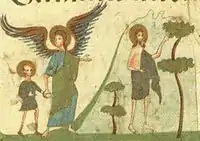 Елизавета, услышав, что ищут Иоанна (сына её), взяла его и пошла на гору. И искала места, где спрятать его, но не нашла. И воскликнула громким голосом, говоря: гора Бога, впусти мать с сыном, и гора раскрылась и впустила её. И свет светил им, и ангел Господень был вместе с ними, охраняя их[17].
