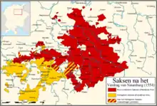 Приговорённый Карлом V к смерти, но помилованный, Иоганн подписал виттенбергскую капитуляцию, давшую герцогу Морицу Саксонское курфюршество (1548), последний ещё 4 июня 1547 года был торжественно возведён императором Карлом V на лугу в курфюрсты.