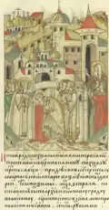 ![]() Фреска в церкви праведного Симеона Богоприимца в Зверине монастыре, Великий Новгород, между 1467 и 1472 гг. | ||