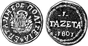 Газета (множественное число gazetes греч. γαζέτα, множественное число γαζέτες) — монета, чеканившаяся на Ионических островах в 1801 году в период протектората России (формально Османской империи). Название монеты было заимствовано у одноимённой денежной единицы Венеции — газетты.