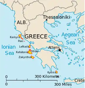 - Territories of the British Empire, History of the Ionian Islands. David Rumsey Map Collection. Дата обращения: 2 июля 2014.