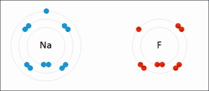 Рассмотрим способ образования на примере «хлорида натрия» NaCl. Электронную конфигурацию атомов натрия и хлора можно представить: и . Это атомы с незавершенными энергетическими уровнями. Очевидно, для их завершения атому натрия легче отдать один электрон, чем присоединить семь, а атому хлора легче присоединить один электрон, чем отдать семь. При химическом взаимодействии атом натрия полностью отдает один электрон, а атом хлора принимает его.