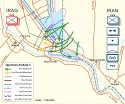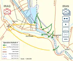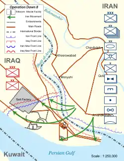 В рамках очередного контрнаступления иранское командование приняло решение нанести основной удар на центральном участке фронта у города Шуш, перерезав шоссе Багдад—Басра и разделив иракскую группировку. Операция получила название «Фатх» (с перс. — «победа»). В ней участвовали около 120 000 человек — как солдат регулярной армии, так и ополченцев КСИР. Иран также стянул к фронту значительные силы ПВО[134]. Ирак смог выставить лишь 40 000 солдат, но имел численное превосходство в бронетехнике[135].