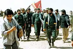 ![]() Слева направо: иранские дети-солдаты; иранский солдат в противогазе; американский фрегат USS Stark (FFG-31), по ошибке атакованный иракскими ВВС; боевики ОМИН, уничтоженные иранскими войсками в ходе операции «Мерсад»; иракские солдаты, взятые в плен в Хорремшехре; ЗУ-23-2 иранской армии | |||