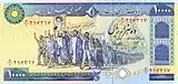 10 000 | 160×77 | синий | Революционеры 1979 года | Мавзолей Имама Резы | 1981 |