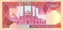 5000 | 154×75 | красный | Иранские революционеры 1979 года | Мавзолей Фатимы Масуме | 1981 |