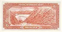 20 риалов | 142 × 71 | Оранжевый | Реза Пехлеви и Персеполь | Железная дорога в горах | |