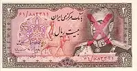10 риалов | 130 × 67 | Синий | Мохаммед Реза Пехлеви | Крылатый дракон из Так-е Бостан | |