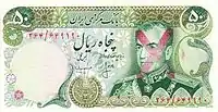 50 риалов | 142 × 71 | Тёмно-зелёный | Реза Пехлеви и дворец Саадабад | ||