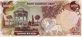 1000 риалов | 148 × 73 | Зелёный | Реза Пехлеви и Кир II | Лев и Солнце Кир II | |