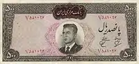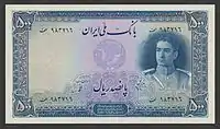 500 риалов | 142 × 71 | Тёмно-синий | Реза Пехлеви и гора Демавенд | ||