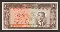 Второй шах династии Пехлеви Мохаммед Реза Пехлеви, шах с 1941 по 1979 год, был изображён на лицевой стороне всех денежных знаков Ирана всех выпусков, начиная с выпуска 1944 года. Его портреты на деньгах сначала взрослели, затем старели вместе с ним.