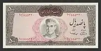 50 риалов | 130 × 67 | Зелёный | Мохаммед Реза Пехлеви на демонстрации | ||