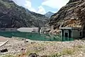 - каменно-набросную плотину 42°41′37″ с. ш. 46°50′10″ в. д. из гравийно-галечникового грунта с асфальтобетонной диафрагмой, высотой 101 м и длиной по гребню 313 м.