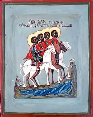 В современных работах (статья «К истории крестного хода на Иргень» (1998 год) читинского краеведа Г. А. Жеребцова, «Патерик сибирских святых и подвижников благочестия» (2006 год) протоиерея Анатолия Дмитрука) о мучениках сообщается как о «четырёх братьях доброй жизни, трудолюбивых, богатых и имевших на окрестных жителей сильное и благотворное влияние»[6]. В пользу этой версии свидетельствует чтимая на Иргени икона Божией Матери «Знамение», на полях которой помещены лики святых Симеона Юродивого (VI в.), мученика Киприана Никомидийского (III—IV в.) и Иосифа Обручника[7]. Предполагается, что эту икону с изображением их небесных покровителей братья взяли с собой в поход в Сибирь[4].