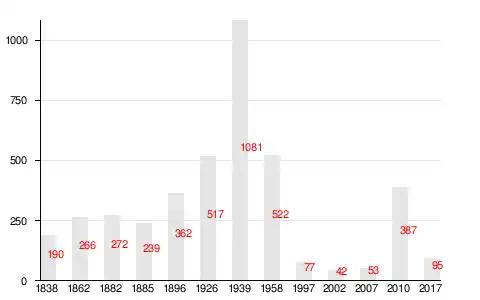 Согласно подворной переписи 1882 года в деревне проживали 50 семей, число жителей: 131 м п., 144 ж. п., разряд крестьян — собственники, а также пришлого населения 2 семьи, в них: 10 м п., 4 ж. п., лютеране: 3 м п., 3 ж. п.[21][25].