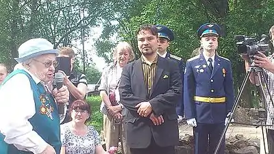 Выступление у монумента финским солдатам, оборонявшим 12-15 июня 1944 года линию ВТ. Посёлок Лебяжье, 12 июня 2014.