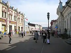 Отмена царской монополии на экспорт пушнины в 1762 году открыла «золотой век» иркутского купечества[52]. Крупнейшие купеческие династии — Сибиряковы, Баснины, Трапезниковы, Дудоровские, Солдатовы разбогатели на российско-китайской торговле, скупая и перепродавая пушнину, и препятствуя доступу иногородних купцов на местный рынок. Другим источником их обогащения было участие в поставках провианта и металла для государственных нужд, полученными из казны деньгами купцы делились с чиновниками[53]. Многие купеческие династии были выходцами с Русского Севера[54]. К концу XVIII века купечество стало играть ведущую роль в гражданской жизни Иркутска, составляя оппозицию государственной администрации. Занимая ключевые должности в органах городской власти, купцы получали доступ к выгодным им контрактам[55]. Крепли традиции благотворительной деятельности купцов, на средства которых строились и содержались церкви, приюты, больницы, школы, театры, библиотеки. Фамилиями известных купцов впоследствии стали называть улицы: Баснинская, Ланинская, Медведниковская, Мыльниковская, Трапезниковская и другие.