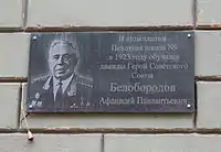 Мемориальная доска «В этом здании обучался дважды Герой Советского Союза Белобородов Афанасий Павлантьевич».