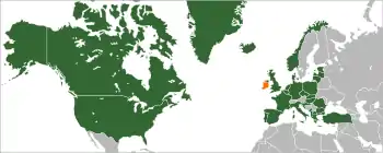 Ирландия была готова в 1949 году заключить двусторонний оборонный пакт с Соединенными Штатами, но выступала против вступления в НАТО до тех пор, пока вопрос о Северной Ирландии не был решен с Соединенным Королевством (см . Проблемы 1968–1998). Официальные отношения между НАТО и Ирландией начались в 1999 г., когда Ирландия подписала программу НАТО «Партнерство ради мира» и Совет евроатлантического партнерства альянса. С тех пор НАТО и Ирландия активно сотрудничают по вопросам миротворчества, гуманитарной помощи, спасения и кризисного регулирования, а также развивают практическое сотрудничество в других военных областях, представляющих взаимный интерес, в рамках Программы индивидуального партнерства Ирландии (IPP) и Программы индивидуального партнерства и сотрудничества (IPCP). , который согласовывается совместно каждые два года. Сотрудничество Ирландии с НАТО сосредоточено на исторической политике нейтралитета страны в вооруженных конфликтах, которая позволяет ирландским военным участвовать в миротворческих и гуманитарных миссиях, где есть мандат Организации Объединенных Наций ( резолюция Совета Безопасности ООН или резолюция Генеральной Ассамблеи ООН). подлежит утверждению кабинетом министров и Дайлом Эйрианном (ирландский парламент). Это известно как ирландская политика «тройной блокировки». Ирландия участвует в процессе планирования и анализа Партнерства ради мира (ПРМ), который направлен на повышение оперативной совместимости ирландских вооруженных сил, Сил обороны с другими государствами-членами НАТО и приведения их в соответствие с принятыми международными военными стандартами, чтобы для успешного развертывания с другими профессиональными силами в миротворческих операциях за рубежом. Ирландия поддерживает действующие Силы для Косово (KFOR) под руководством НАТО и делает это с 1999 г., а также предоставила ограниченное количество военнослужащих Международным силам содействия безопасности (ISAF) под руководством НАТО в Афганистане (2001–2014 гг.), Поскольку они были санкционированы. резолюциями Совета Безопасности ООН. Программа ИСАФ по борьбе с СВУ в Афганистане была в основном разработана старшими офицерами артиллерийского корпуса ирландской армии . Ранее, в 1997 году, до того, как Ирландия установила официальные отношения с альянсом, она развернула персонал для поддержки миротворческой операции под руководством НАТО в Боснии и Герцеговине, где большая часть ее сил входила в состав международной роты военной полиции, действовавшей преимущественно в Сараево.