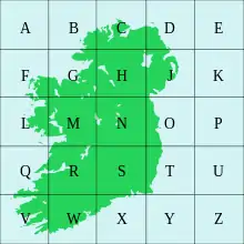 Согласно системе, площадь Ирландии поделена на 25 квадратов размером 100x100 км, каждому из которых присвоена одна буква. Квадраты пронумерованы от A до Z с пропущенной буквой I. В каждой клетке отсчёт начинается от юго-западного угла, при этом G0305 означает «квадрат G, 3 километра на восток, 5 километров к северу». Точность указания места регулируется количеством цифр в числе, наиболее широко используются координаты по 6 цифр (по 3 на каждую координату), чтобы возможно было указание места с точностью до 100 метров.