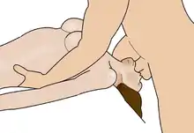 - применение так называемого стопора, в виде помещения кисти руки вокруг нижней части тела полового члена, что позволяет контролировать глубину его проникновения в глотку,