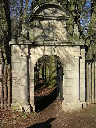 Главный вход в заповедник оформлен виде каменной арки в архитектурном стиле барокко, за которой начинается аллея, ведущая к поросшей лесом площадке, на которой установлены памятники, связанные с именами членов ордена. Здесь же находится и реплика хижины, в которой собирались литераторы.