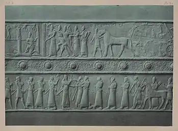 ![]() Каменная плита с описанием строительной деятельности Урхилины и его сына Уртами. | |