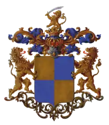 Щит четверочастный, золотом и лазурью.