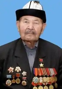 В возрасте 18 лет ушёл на фронт добровольцем (по другим данным — призван Туркестанским райвоенкоматом Южно-Казахстанской области 25 марта 1943 года[9]).После прохождения «учебки» в Ашхабаде, был отправлен на 1-й Украинский фронт. Позже, с марта 1944 года воевал в составе 4-го Украинского фронта.