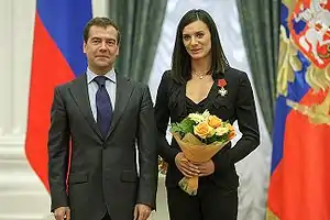 Еле́на Гаджи́евна Исинба́ева (род. 3 июня 1982 года, Волгоград, РСФСР, СССР) — российская прыгунья с шестом. Двукратная олимпийская чемпионка (2004, 2008), бронзовый призёр Олимпийских игр 2012 года. Трёхкратная чемпионка мира на открытом воздухе и 4-кратная чемпионка мира в помещении, чемпионка Европы как на открытом воздухе, так и в помещении. Обладательница 28 мировых рекордов[4] в прыжках с шестом. Заслуженный мастер спорта России.