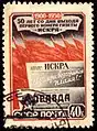 50-летие со дня выхода первого номера газеты. Почтовая марка СССР, 1950 год.
