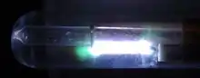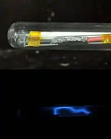 Когда используется кварц в разрядном промежутке, он демонстрирует голубую фосфоресценцию после разряда из-за ультрафиолетовой составляющей.