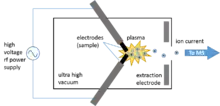 В наиболее распространенная конфигурация: искровой разряд в вакууме генерируется между двумя электродами при помощи подачи переменного напряжения радиочастотного диапазона и амплитудой в несколько десятков киловольт. Концами электродов являются анализируемые образцы. Процессы в плазменном разряде вызывают испарение, атомизацию и ионизацию материала пробы. Генерируются в основном однозарядные атомарные ионы.