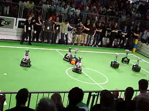 - Роботы в ежегодном турнире RoboCup соревнуются в упрощённой форме футбола.
