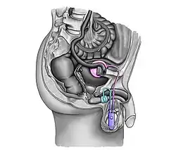 - Искусственный сфинктер с баллонным резервуаром или 3-компонентным устройством: манжета, помпа и баллон. Манжета располагается вокруг мочеиспускательного канала, помпа помещается в мошонку, а баллонный резервуар имплантируется в ретропубическое пространство — между мочевым пузырем и подвздошной веной. Давление в гидравлической цепи создается эластичным баллонным резервуаром и давлением из ретропубического пространства.[1]
