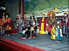 Ритуальные тибетские танцы (гар и цам), песни, оперы и оперетты, сюжет которых основан на древних легендах или исторических событиях, исполняются монахами. Представления происходят на открытом воздухе[1] с использованием маск, отличающихся большой экспрессией.[2]