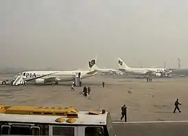 | Pakistan International Airlines | Абу-Даби, Амстердам, Бангкок (Суварнабхуми), Барселона, Бирмингем, Даммам, Джидда, Доха, Дубай, Кабул, Копенгаген, Кувейт, Лидс (Бредфорд), Лондон (Хитроу), Манчестер, Маскат, Милан (Мальпенса), Осло, Париж (Шарль-де-Голль), Пекин (Столичный), Рим, Стамбул (Ататюрк), Токио (Нарита), Торонто (Пирсон), Шарджа, Эр-Рияд |