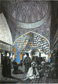 | Религиозная процессия на празднике Мохаррем в Шуше. Картина В. В. Верещагина, 1865 год. | Религиозная процессия Мухаррам в Шуше. Рисунок В. В. Верещагина, 1865 год. | Самоистязатели в Шуше. Рисунок В. В. Верещагина, 1865 год. |
