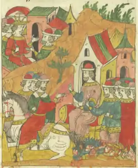 ![]() Исмаил посылает Сююндюка к Ивану IV Лицевой летописный свод | |