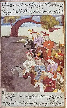 - A. Beveridge, «The Babur-nama in English (Memoirs of Babur)», vol. I, p. 354