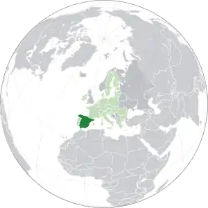 Испа́ния (исп. España, МФА: [esˈpaɲa]), официально Короле́вство Испа́ния (исп. Reino de España, МФА: [ˈreino ðe esˈpaɲa]) — трансконтинентальное суверенное государство в Южной Европе, имеющее часть территорий в Африке.