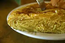 Испанская торти́лья (картофельная тортилья; исп. tortilla de patatas) — яичница на оливковом масле из куриных яиц с картофелем. Наряду с паэльей и гаспачо является одним из наиболее узнаваемых блюд испанской кухни. Часто подаётся на завтрак. В испанских барах тортилья, сервированная в бутерброде, предлагается в качестве закуски. Возможно, имеет сходство с итальянской фриттатой или белорусской дрочёной.
