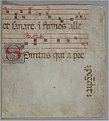 Наиболее убедительным аргументом в пользу средневекового характера рукописи для непрофессионалов была очевидная древность большинства листов пергамента, на которые был нанесён фальсификатором поздний красочный слой. Некоторые листы представляются исследователям чистыми страницами, изъятыми из средневековых рукописей, где они присутствовали, но иногда миниатюра нанесена вместо существовавшего прежде старинного текста. Чаще всего Испанский фальсификатор в таких случаях использовал рукопись с записью средневековой музыки, при этом нотный текст часто удалялся только с одной стороны, чтобы освободить место для миниатюры. В то время листы больших старых хоровых книг часто появлялись на аукционах на европейском континенте, особенно в Испании. Фальсификатор, возможно, счёл приобретение их наиболее простым и дешёвым способом получения материала для своей работы, а также придания им иллюзии подлинности[4]. Существует гипотеза, что использовался один и тот же хоровой сборник, составленный около 1400 года в Италии, на это указывают оборотные стороны миниатюр, где сохранился нотный текст[1].